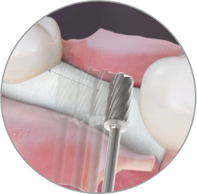 - Perforar para extraer cómodamente el hueso autógeno en forma de chip-hueso en un corto periodo de tiempo.