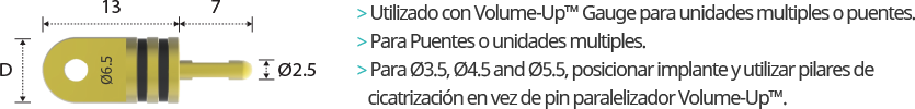 - Utilizado con el pin paralelizador Volume-up™ para unidades multiples o puentes.