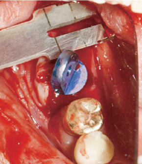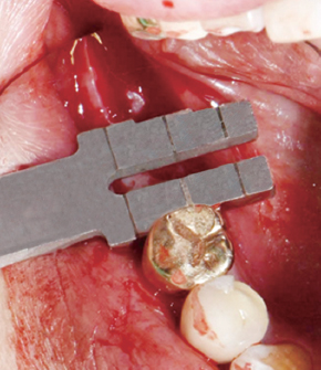 Regeneración de hueso alveolar a mínimo 3 mm vertical para mantener altura gingival.
