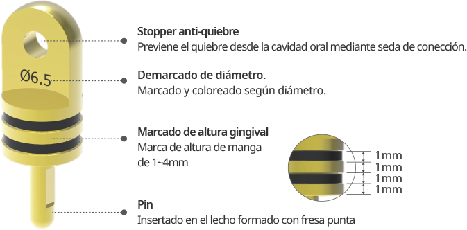 - Se utiliza para guiar la instalación del implante y la elección del pilar de cicatrización, para mantener la zona cervical de la futura rehabilitación protésica con el grosor del diente natural.