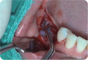 - Prevención de desplazamiento: No solo siendo suturada con la encía sino que además utilizando Sistema BOSS® atornillado a la estructura de titanio de la membrana.