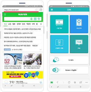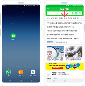 1. 네이버 앱을 켜 하단으로 드래그합니다.