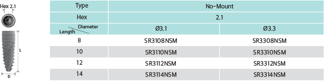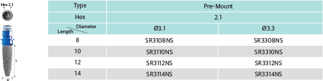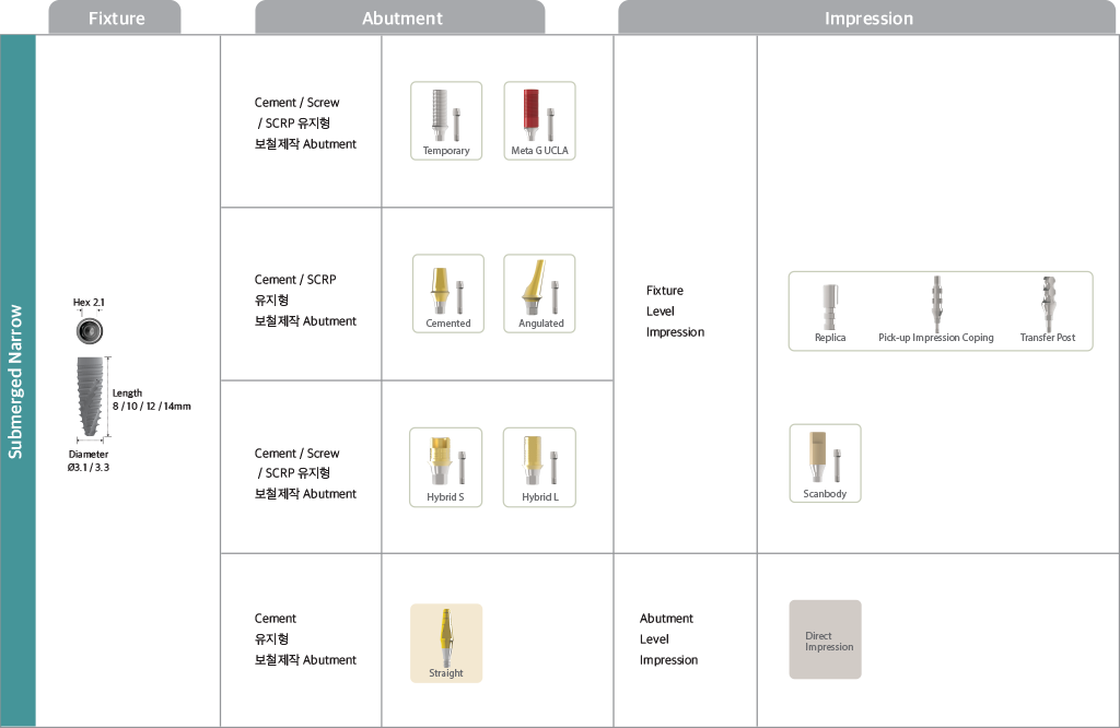 - Sub. Narrow Implant system (Ø3.1, Ø3.3)