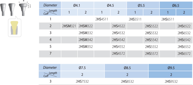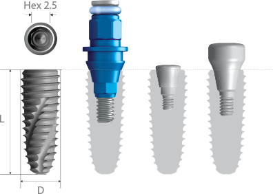 - Internal Hex Connection (Taper 11°/ Hex 2.5)