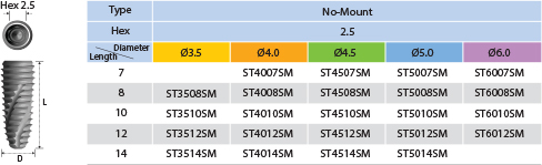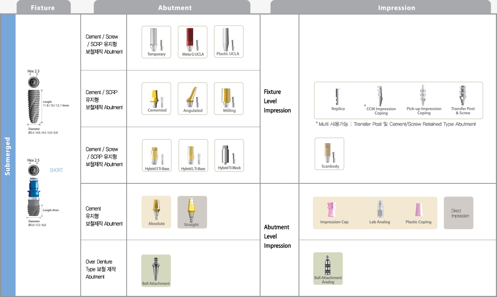- Sub. Implant system (Ø3.5, Ø4.0, Ø4.5, Ø5.0, Ø6.0)