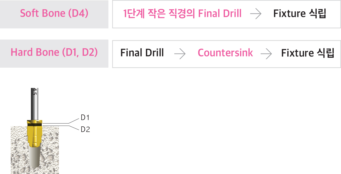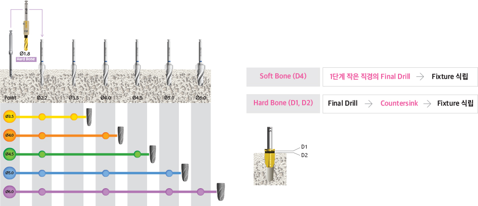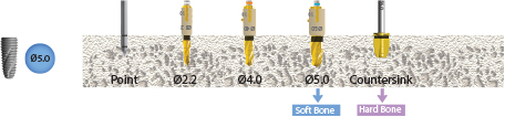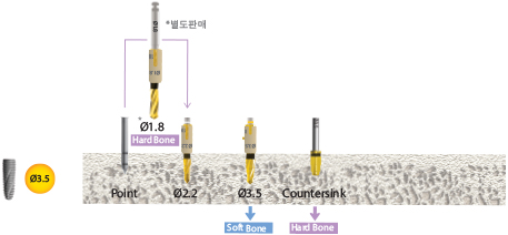 - 하나의 Drill 과 Stopper로 모든 임플란트 길이에 적용할