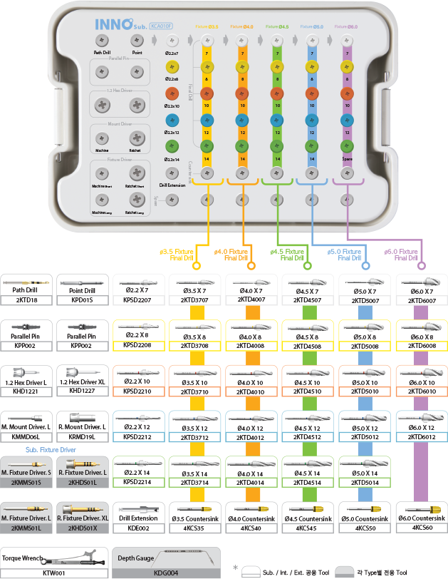 - Sub. Implant system (Ø3.5, Ø4.0, Ø4.5, Ø5.0, Ø6.0)