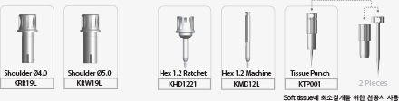 - Sub. Type 사용 시 Abutment 체결 예측을 위한 Gauge와 Abutment 체결 Driver 등을 구비한 2차 수술 kit