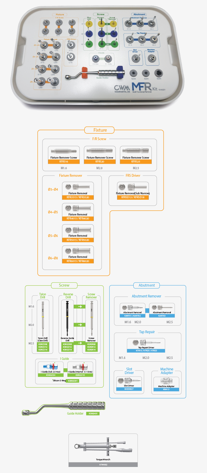 번거로운 파절 Fixture / Screw / Abutment 의 손쉬운 제거