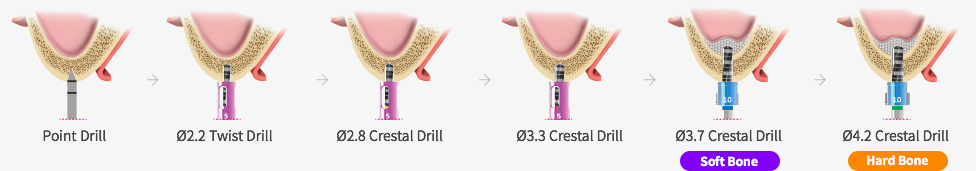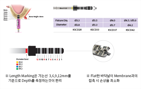 - ※ Ø5.0 Fixture Normal Bone 이상은 Fixture 식립전 최종적으로 전용 Final Drilling 필요