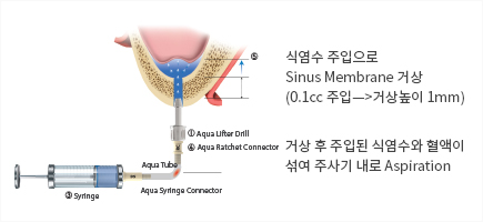 - 상악동 하연골의 거상이 제대로 되었는지 확인 후 Aqua Membrane