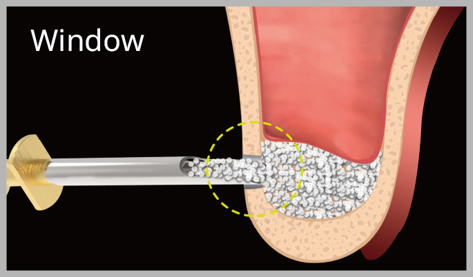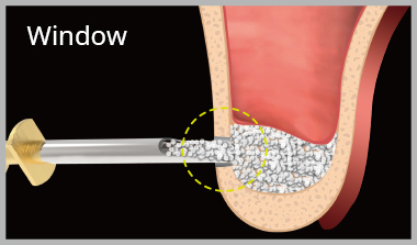 상악동 거상술 시 : 대량의 골이식재를 Window 입구까지 정확히 전달