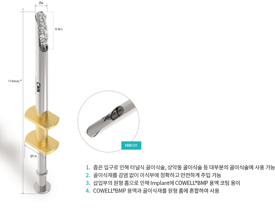 2. 골이식재를 감염 없이 이식부에 정확하고 안전하게 주입 가능