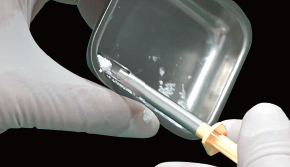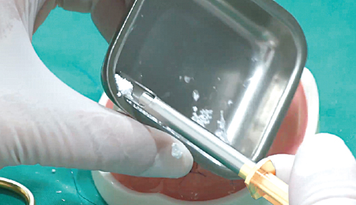 CowellBMP 용기 내 골이식재를 본디쉬에 담음