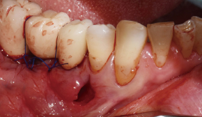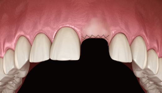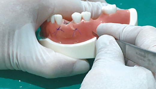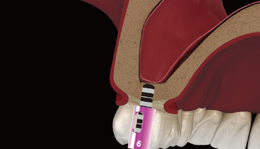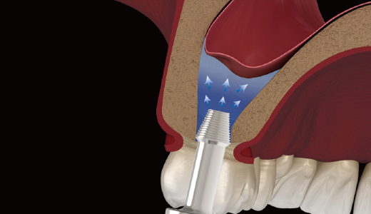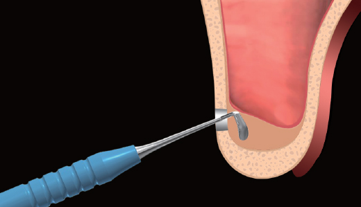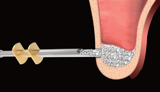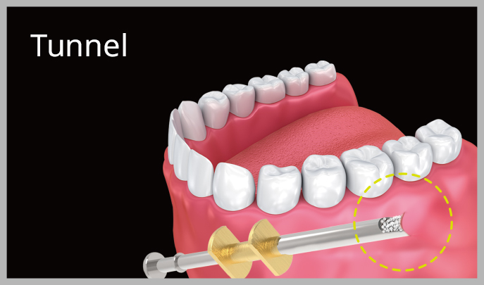 터널 테크닉 시 : 터널 내부에 박리 된 공간으로 깊숙이 골이식재 전달