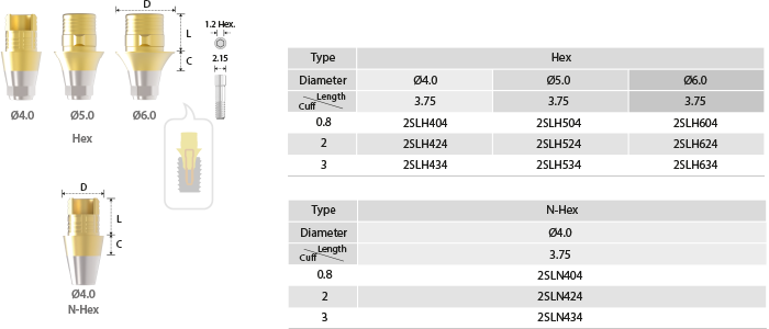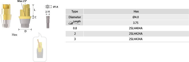 > Соединен с винтом фиксации абатмента Stargrip (2SLAH100, 2SLAH200 & 2SLAH300).