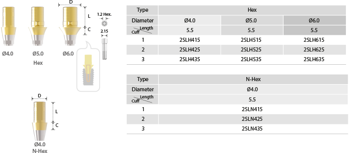 > Соединен с винтом фиксации абатмента (2SSHR200).