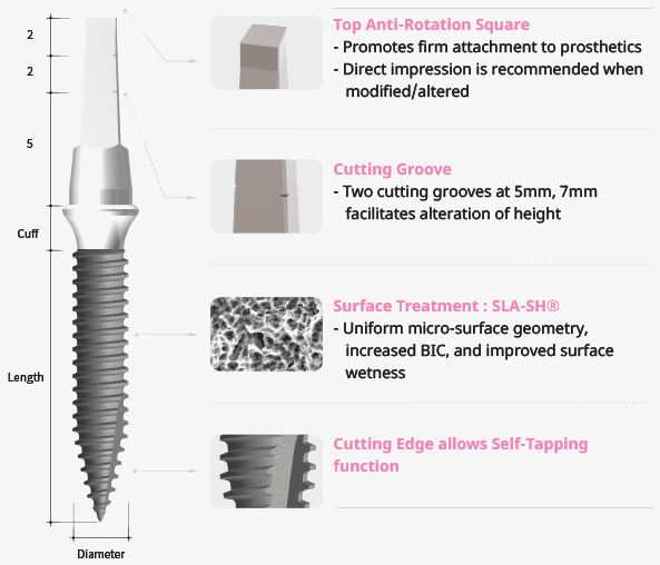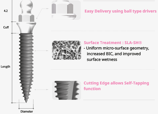 ※ In case of D4 Bone quality, make proper adjustment in drilling. Due to narrow diameter, Mini Plus Implants have self-tapping characteristic.