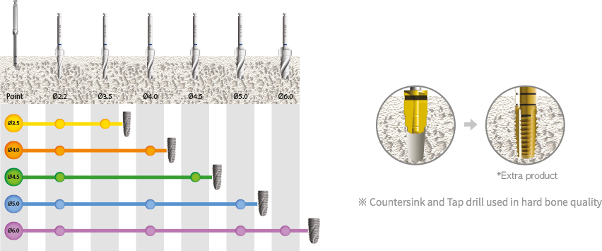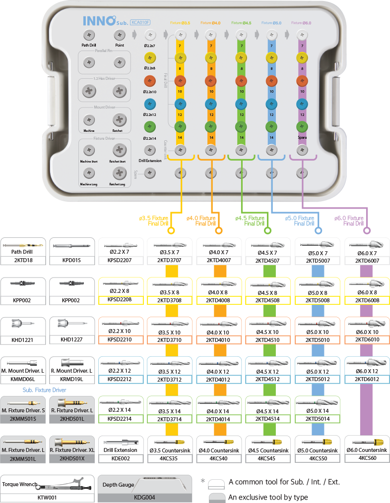- Sub. Implant system (Ø3.5, Ø4.0, Ø4.5, Ø5.0, Ø6.0)