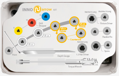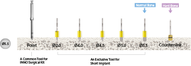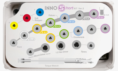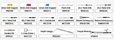 - A simpler kit for implant surgery, applied to all length of implants with drills and stoppers