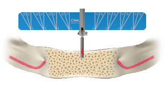 - Просверлите отверстие в направлении, соответствующем указателю угла на шкале, и установите имплантат.