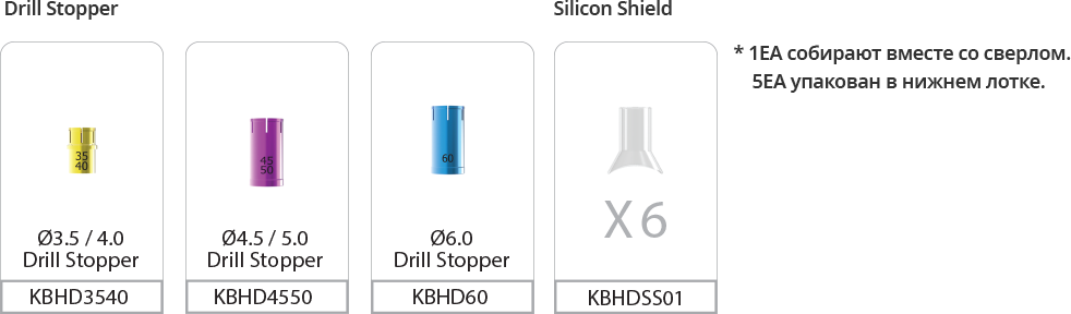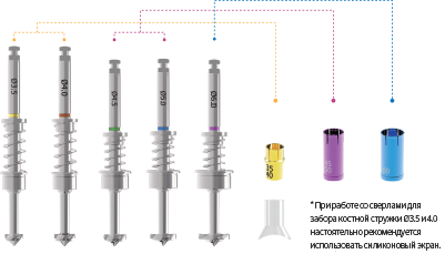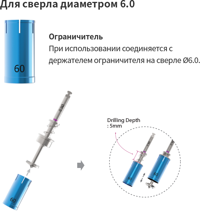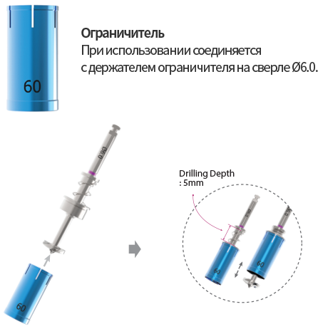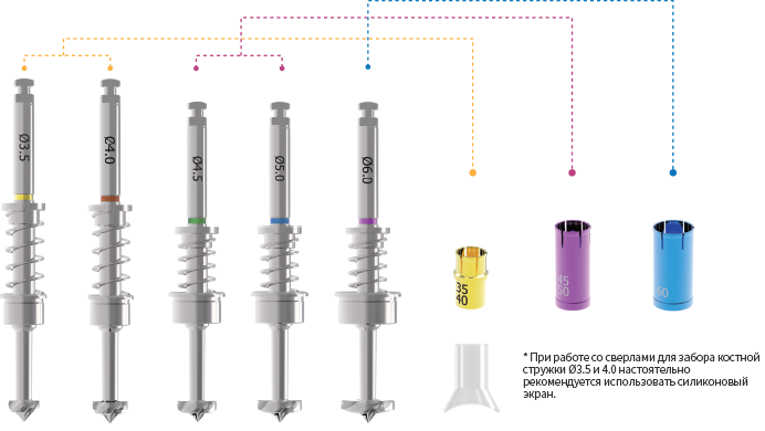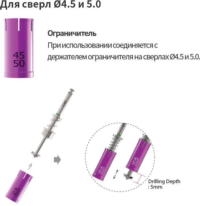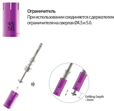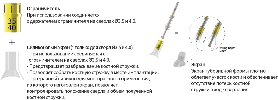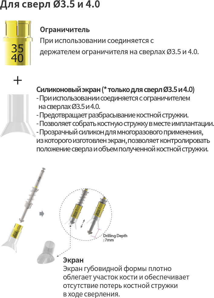 Используйте сверло Ø3.5/4.0 и наденьте ограничитель на выбранное сверло. Затем наденьте экран на ограничитель Ø3.5 и 4.0.