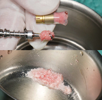 Отсоедините силиконовый экран и ограничитель, и соберите костную стружку для костной пластики.