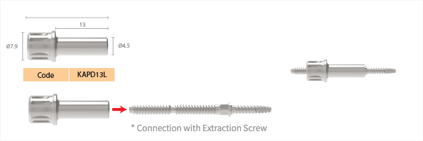 - The extraction screw is fastened into the hole that was created by the extraction drill via the screw method, and it is stably fixed