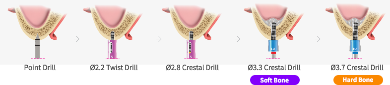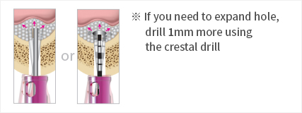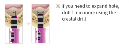 - Drilling 1~2mm more deeply than steps of Crestal Drill