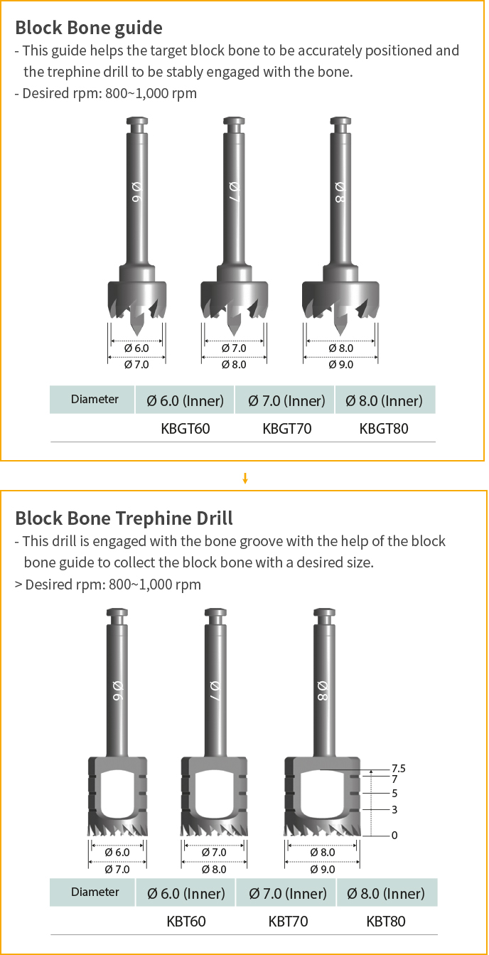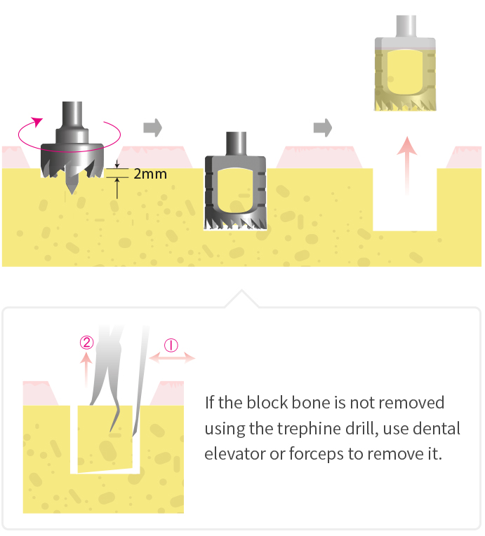 - An easy-to-use kit containing drills for block-type bone collection and failed fixture